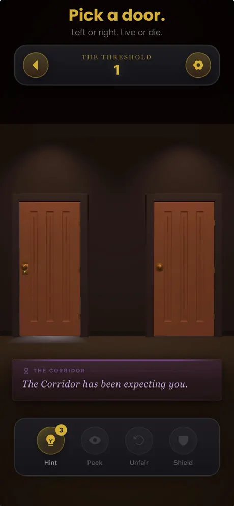 Mind the Door is a chance-based puzzle survival game: every room gives two doors—one advances, the other ends the run. No take-backs, just risk, streaks, and leaderboards as you try to push farther each time.